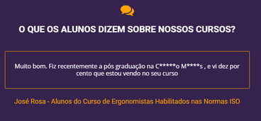 Atuo na área de ergonomia há mais de 15 anos e minha missão é formar profissionais de alta performance, reconhecidos pelo mercado de trabalho e com sucesso em suas carreiras, já tendo auxiliado mais de 1200 alunos ao longo desses anos.